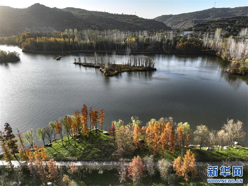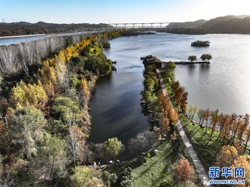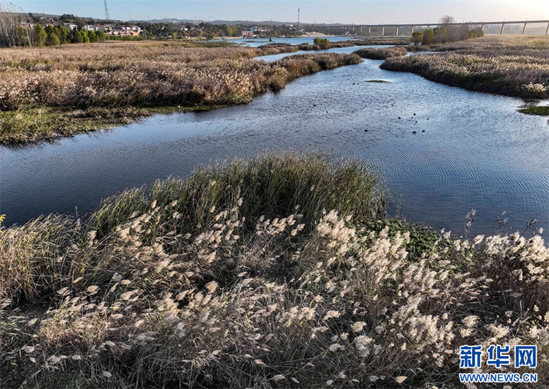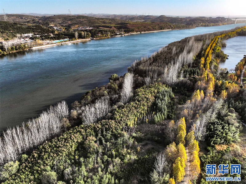 11月16日拍攝的河南黃河濕地國家級自然保護(hù)區(qū)濟(jì)源段景色(無人機(jī)照片)。