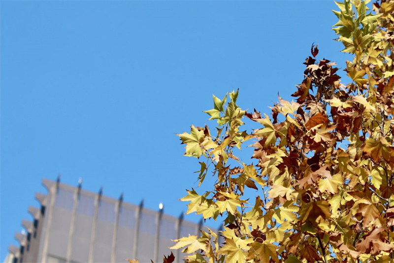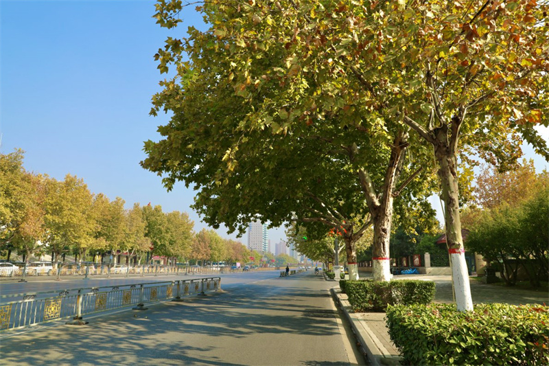 11月20日,冬日時(shí)節(jié),鄭開大道的梧桐樹葉次第漸黃,色彩斑斕,成為城市一道靚麗的風(fēng)景線。開封+記者 姜菡 攝