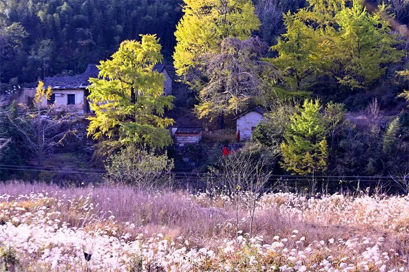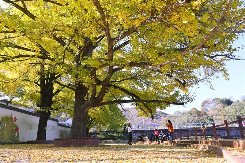 丹楓流火,銀杏如暮。初冬時(shí)節(jié),新縣卡房鄉(xiāng)的古銀杏樹(shù)又迎來(lái)了一年中最燦爛、最驚艷的時(shí)刻。晨起時(shí),暖陽(yáng)如初,朝暉熠熠,光的瀑布便從那葉間傾瀉而下。微風(fēng)過(guò)處,片片黃葉在空中婀娜起舞,不到片刻,所到之處盡披“金甲”。這黃葉,美了小橋流水,美了村莊屋舍,更美了大別山的初冬。不少游客慕名而來(lái)打卡拍照,沉醉在這被金色渲染的初冬美景中。(焦?jié)h平/文圖)