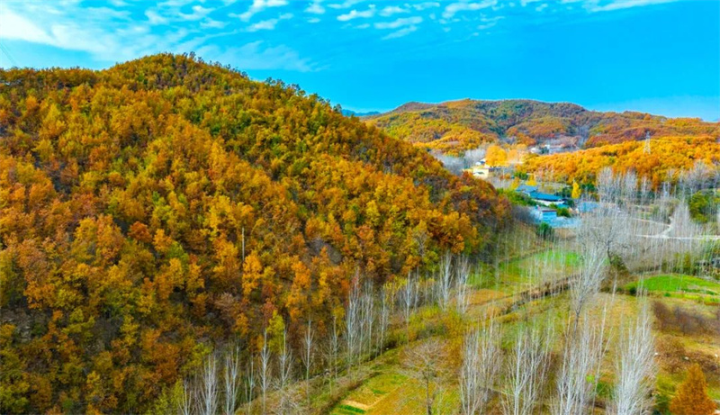 進(jìn)入冬季,萬木凋零,然而在河南省平頂山市魯山縣江河新區(qū),梧桐葉子是金燦燦的,晶瑩剔透非常漂亮。美麗的葉子和秋冬的山林應(yīng)景,讓這五彩的地毯和秋冬渾然天成。(攝影:馬進(jìn)偉 作者單位:魯山縣攝影家協(xié)會(huì))