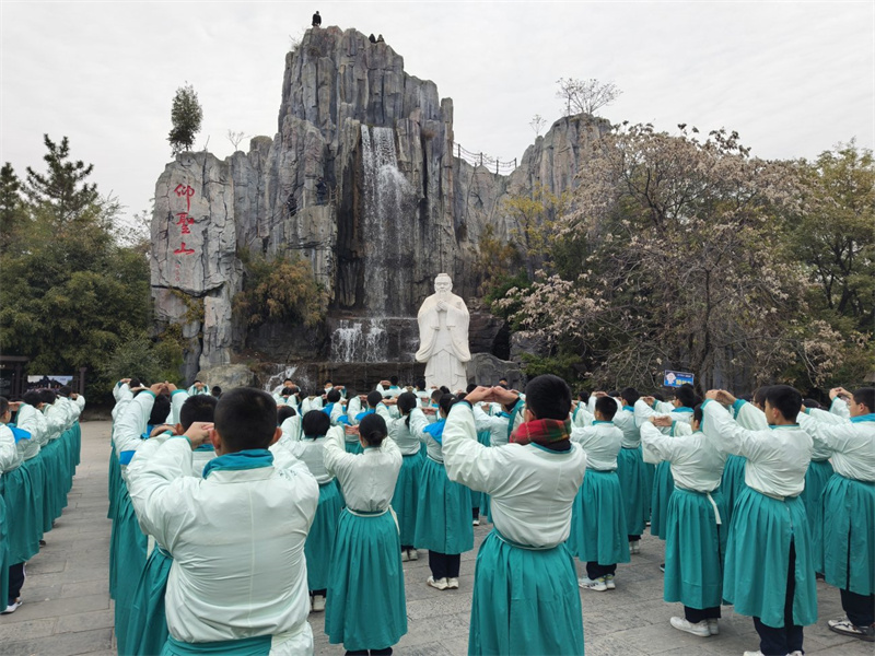 11月27日,學(xué)生在中國翰園碑林景區(qū)開展研學(xué)活動(dòng),增強(qiáng)對傳統(tǒng)文化知識的理解和掌握,樹立文化自信。 開封+記者 袁洋 攝