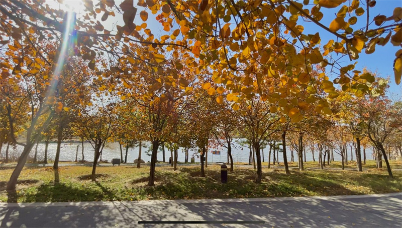 11月27日,冬日的中意湖靜謐宜人,色彩斑斕,令人陶醉。開(kāi)封+記者 姜菡 攝