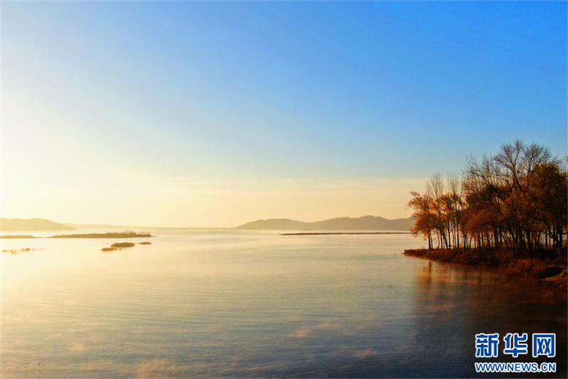 12月6日拍攝的鎮(zhèn)平縣趙灣水庫景色。
