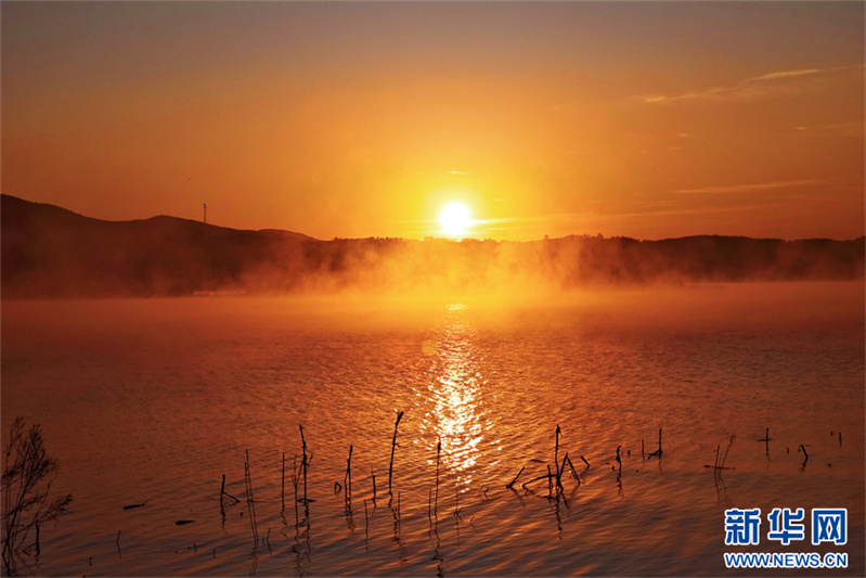 12月6日清晨拍攝的鎮(zhèn)平縣趙灣水庫景色。初冬時節(jié),位于河南省南陽市鎮(zhèn)平縣的趙灣水庫晨霧繚繞,猶如一幅壯美的畫卷,讓人心曠神怡。新華網(wǎng)發(fā)(時君洋 攝)