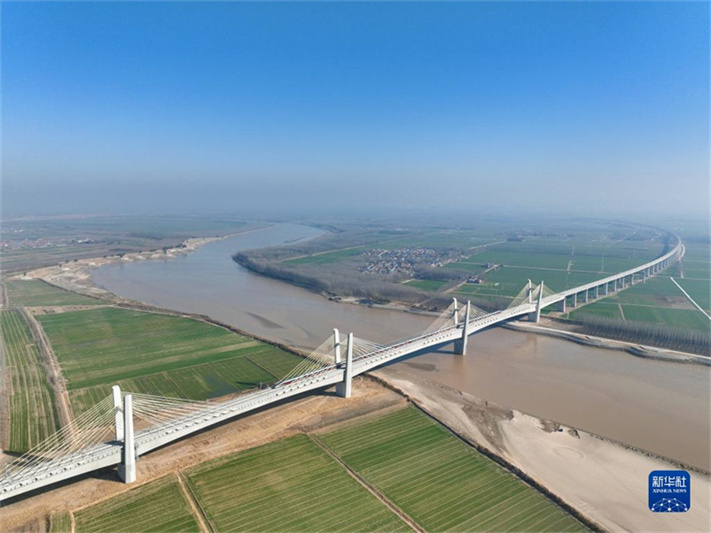 12月8日拍攝的濟(jì)鄭高鐵長(zhǎng)清黃河鐵路特大橋(無(wú)人機(jī)照片)。12月8日,濟(jì)鄭高鐵全線貫通運(yùn)營(yíng)。濟(jì)鄭高鐵是國(guó)家“八縱八橫”高鐵網(wǎng)的重要連接線,是山東省“八縱六橫”高鐵網(wǎng)的西向出省通道,也是河南“米”字形高鐵網(wǎng)的最后一“筆”。項(xiàng)目通車(chē)后,魯豫兩省實(shí)現(xiàn)高鐵直通,鄭州東站至濟(jì)南西站間最快1小時(shí)43分鐘可達(dá)。新華社記者 邢廣利 攝