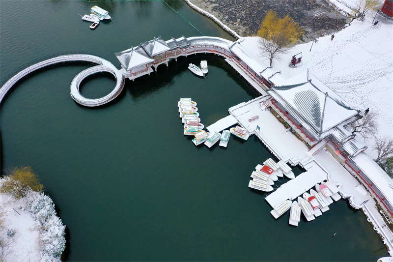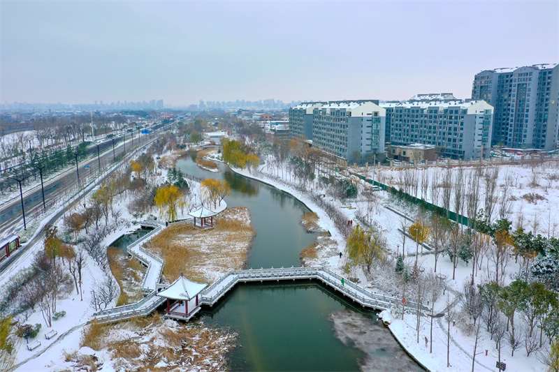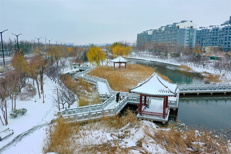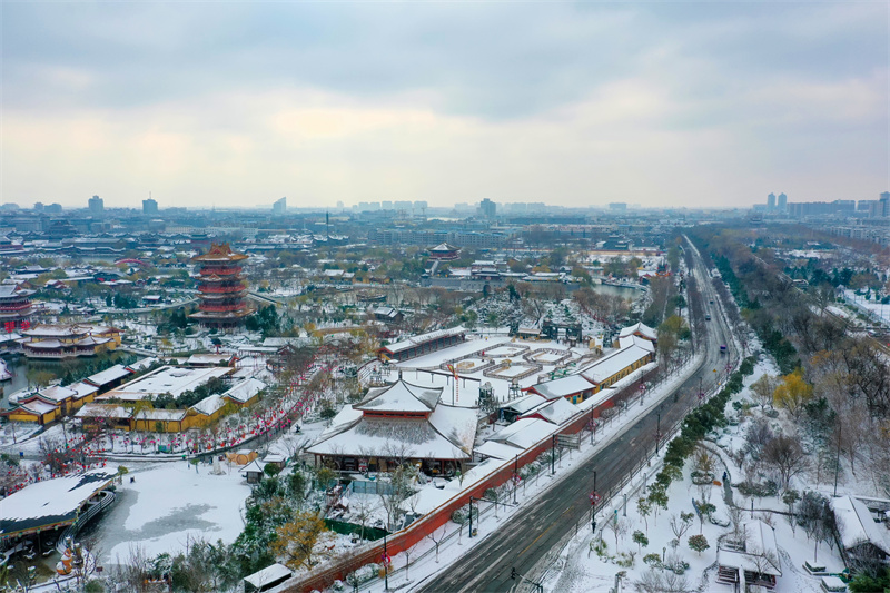 12月11日,古城開(kāi)封迎來(lái)2023年冬第一場(chǎng)雪后,天地間銀裝素裹,仿佛置身在一幅幅的水墨畫(huà)中。開(kāi)封+記者 石斐 攝