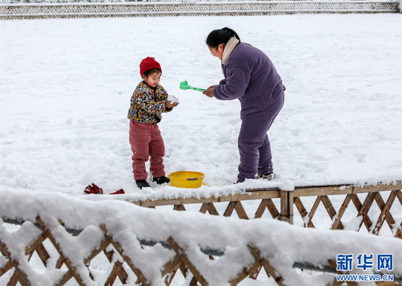 12月11日,河南省焦作市博愛(ài)縣許良鎮(zhèn)南道村,家長(zhǎng)帶著孩子在玩耍。