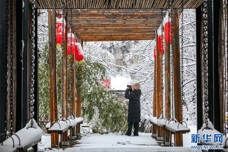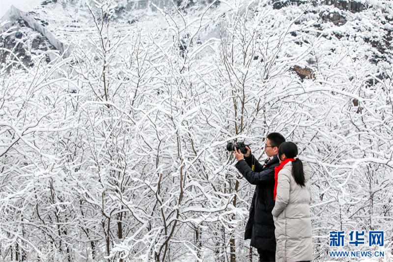 12月11日,河南省焦作市博愛(ài)縣許良鎮(zhèn)于莊村,攝影愛(ài)好者在拍攝雪景。