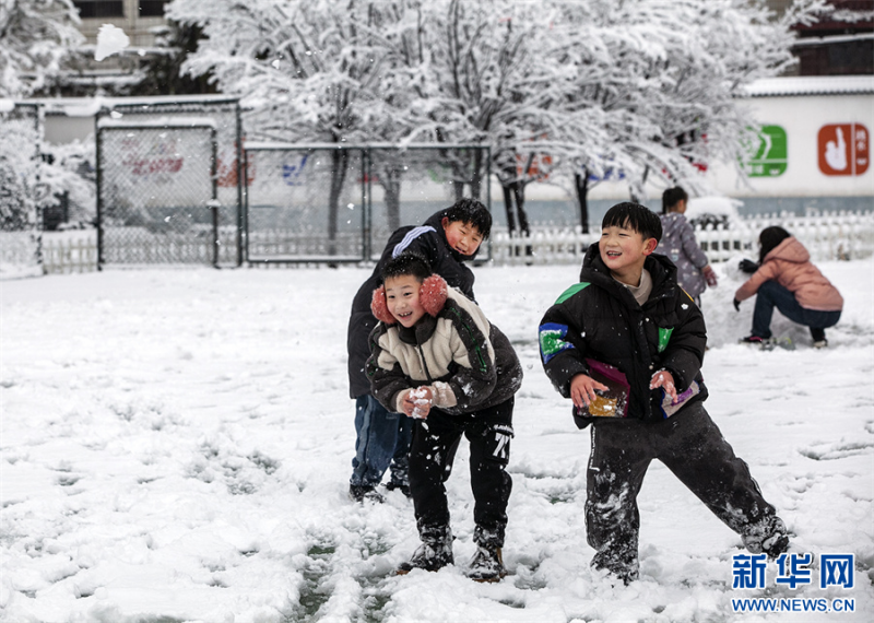 12月11日,河南省焦作市博愛(ài)縣秀珠小學(xué),師生們?cè)谘┲型嫠!?/span>