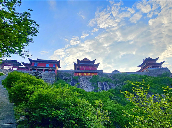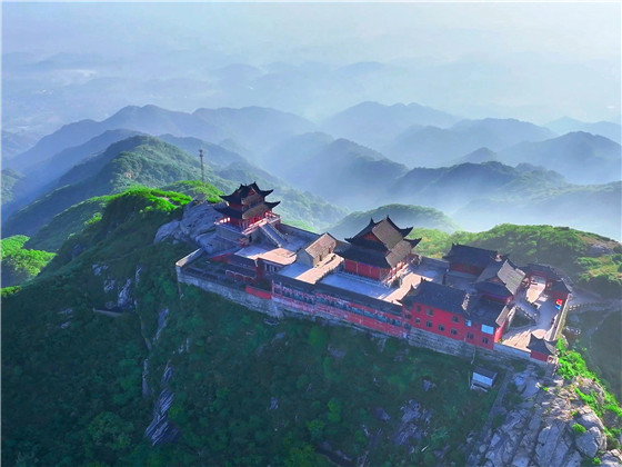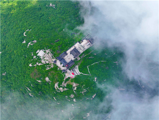 淮源風(fēng)景名勝區(qū)主峰太白頂上的云臺(tái)禪寺 曹靜 攝