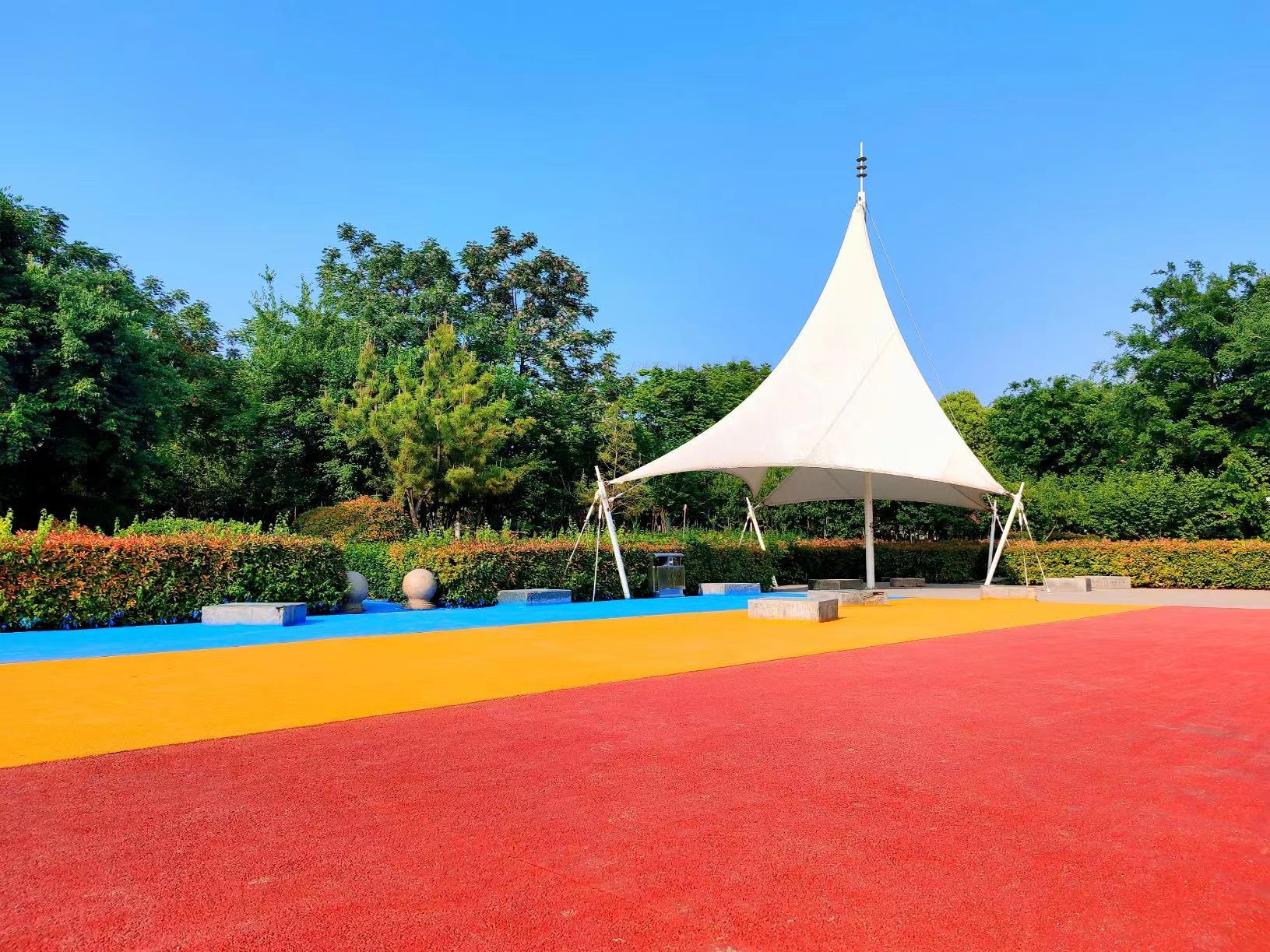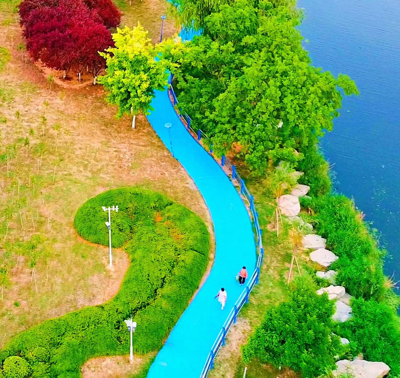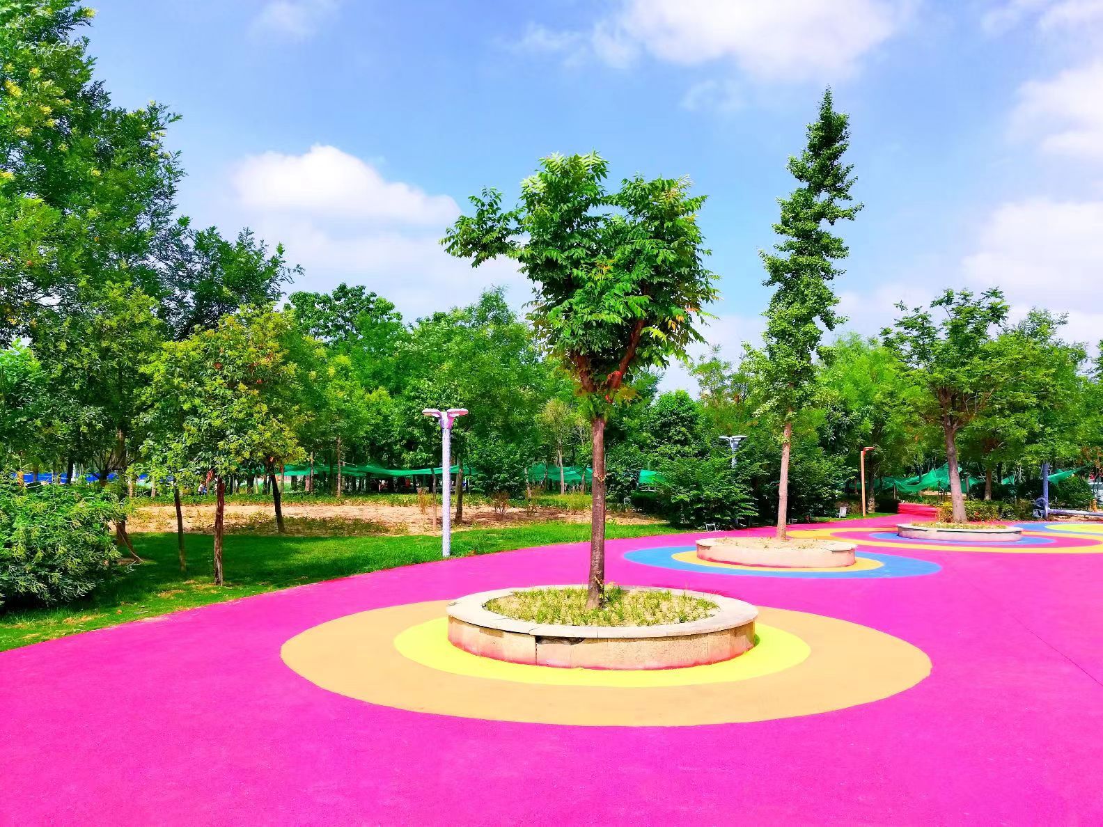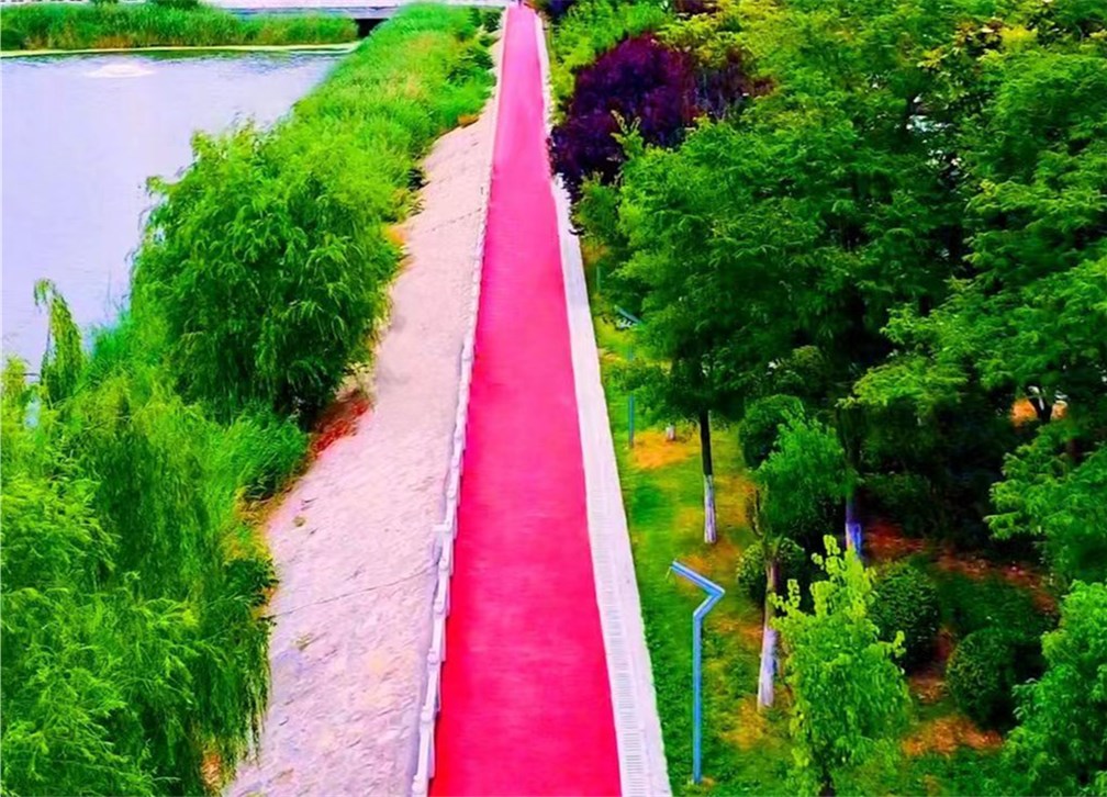 入夏以來,河南省商丘市虞城縣為城區(qū)各公園的步道及活動區(qū)域的地面涂上色彩。耀眼奪目的色彩扮靚了公園,成為小城一道亮麗的風景線。