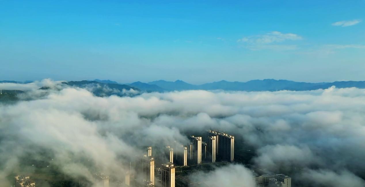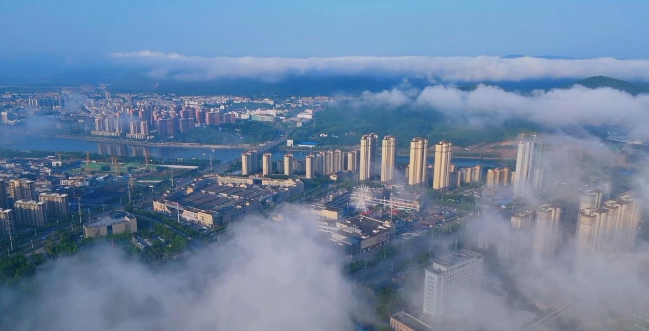 一場夏雨過后,南水北調(diào)中線工程渠首所在地、核心水源區(qū)——河南省淅川縣云霧繚繞,縣城在云海中若隱若現(xiàn),美如畫卷。特別是橫貫縣城的范蠡公園、雄偉的樓房等在云霧中如詩如畫,美不勝收。