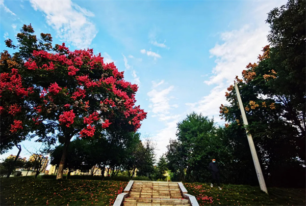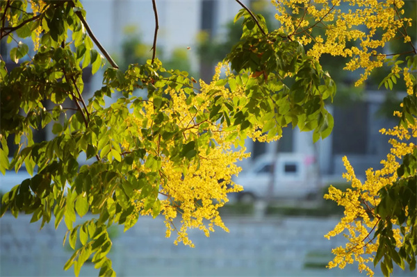 初秋的泌陽縣公園里、街道邊,欒樹花已經(jīng)盛開,金黃色的小花朵綻放,構(gòu)成一幅幅美麗的圖畫。