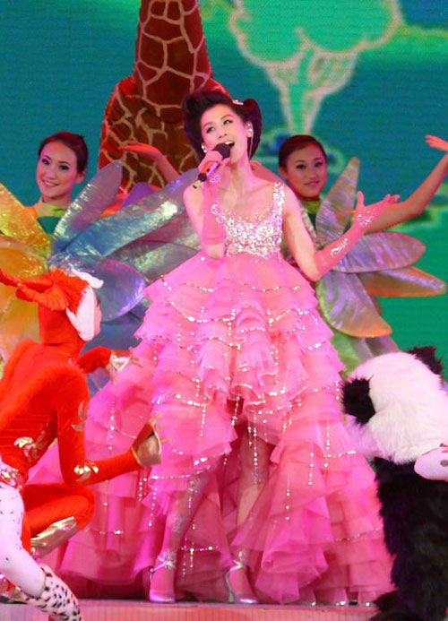 黃圣依春晚化身春姑娘 :大熊貓為化身“春姑娘”的黃圣依伴舞