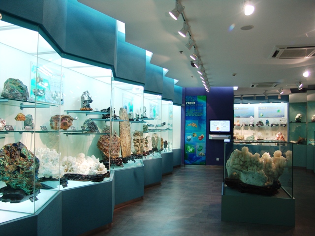 礦物廳:礦物是大自然恩賜給人類的瑰寶,經(jīng)過億萬年的孕育、演變,形成了千姿百態(tài)、五光十色的靚麗群體,對(duì)人類的生活有著廣泛的影響。人們的生活幾乎每天都離不開礦物。該廳展示了數(shù)百種精美絕倫的礦物晶體、寶石標(biāo)本。