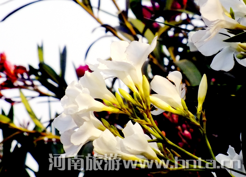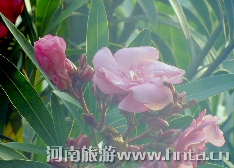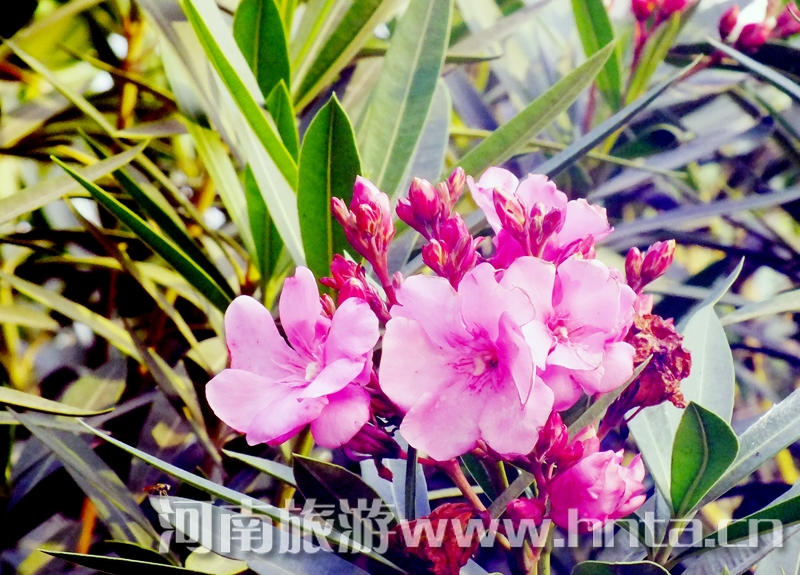 花似桃,葉像竹,一年三季,常青不敗。從春到夏到秋,花開花落,此起彼伏。迎著春風(fēng)、冒著暴雨、頂著烈日,吐艷爭(zhēng)芳。