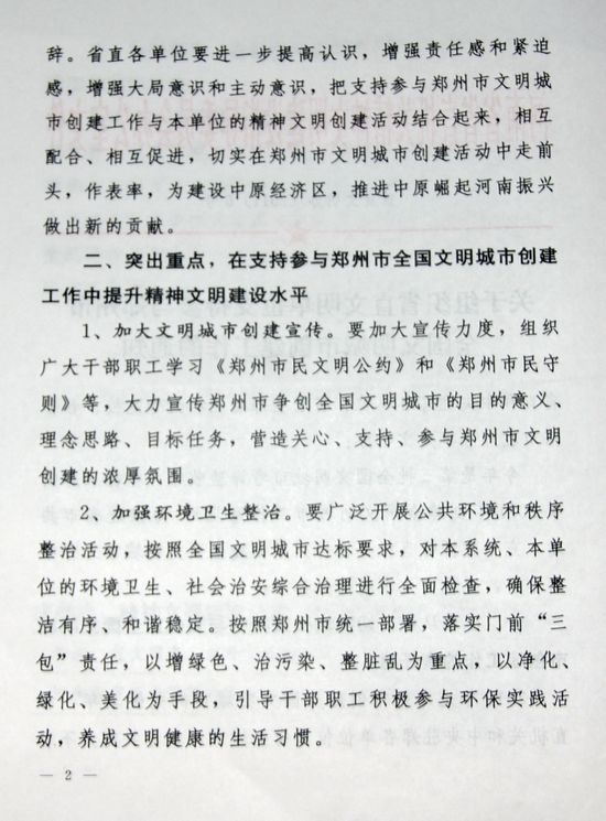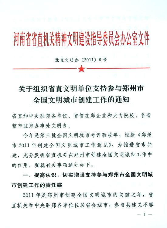 關(guān)于組織省直文明單位支持參與鄭州市全國(guó)文明城市創(chuàng)建工作的通知