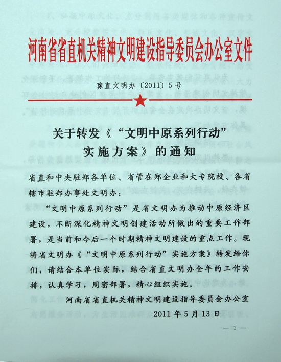 關(guān)于轉(zhuǎn)發(fā)《“文明中原系列行動(dòng)”實(shí)施方案》的通知