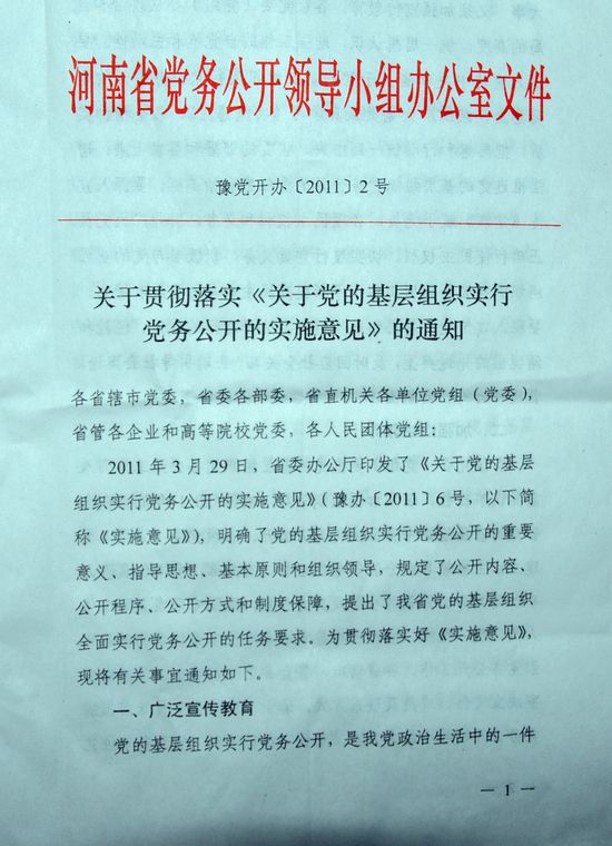 關(guān)于貫徹落實《關(guān)于黨的基層組織實行黨務(wù)公開的實施意見》的通知